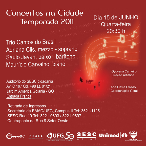 2ª Apresentação da temporada 2011 será com o trio Cantos do Brasil. O evento ocorrerá no auditório do Sesc Cidadania às 20h30 no próximo dia 15