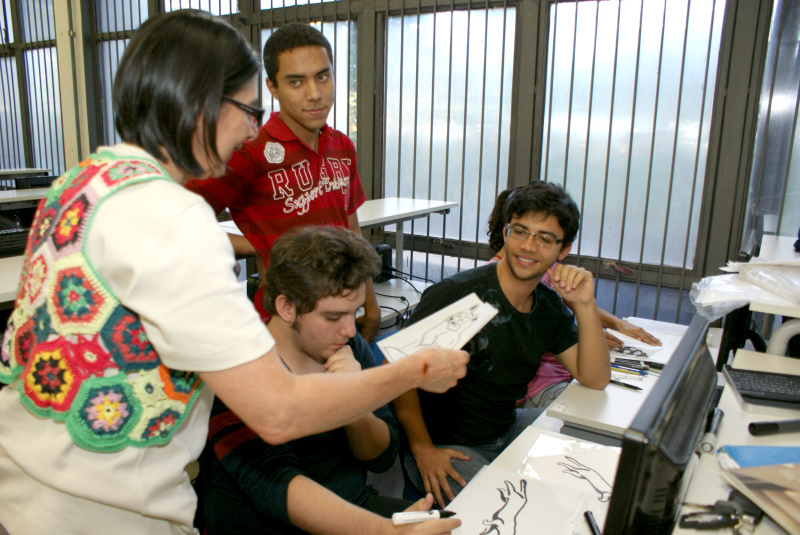 Estudantes avaliam trabalhos com a professora Ciça Fittipaldi