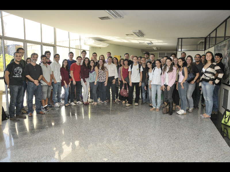 Na manhã desta quinta-feira, 30/06, foi realizada uma reunião de despedida para os 45 alunos da UFG aprovados em programas de intercâmbio para o segundo semestre do ano. Além da presença dos estudantes, a cerimônia contou com o reitor da universidade, Edward Madureira Brasil, a pró-reitora de graduação, Sandramara Matias Chaves, a coordenadora de assuntos internacionais, Ofir Bergemann de Aguiar e vários diretores de unidades acadêmicas.