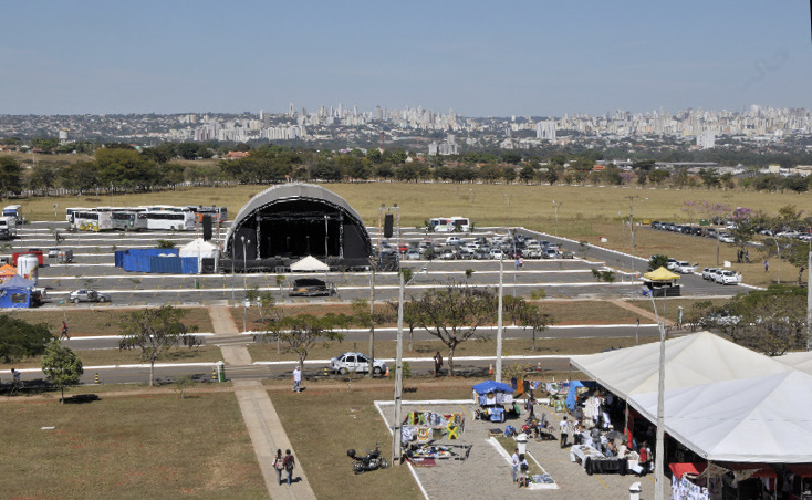 Palco Goyazes instalado no Câmpus Samambaia, com vista panorâmica de Goiânia ao fundo