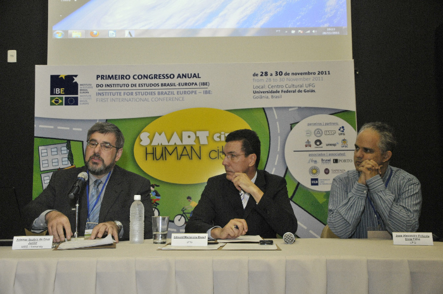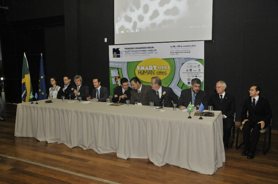 Na manhã de segunda-feira, 28/11, com o tema Smart Cities, Human Cities, deu-se início ao 1° Congresso Anual do Instituto de Estudos Brasil - Europa. O evento, com o objetivo de discutir os problemas ligados aos conglomerados urbanos, visando encontrar saídas que possam unir qualidade de vida e desenvolvimento, ocorre no período de 28 a 30 de novembro, no Centro Cultural UFG, na Praça Universitária.