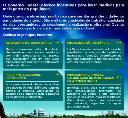 Campanha incentiva médicos a trabalharem em bairros carentes e cidades do interior In 03/01/12 01:05 . Um dos benefícios aos estudantes de Medicina é o abatimento no saldo do Fundo de Financiamento Estudantil Fonte: Governo federal TweetWhatsApp Elenca tutto Volver