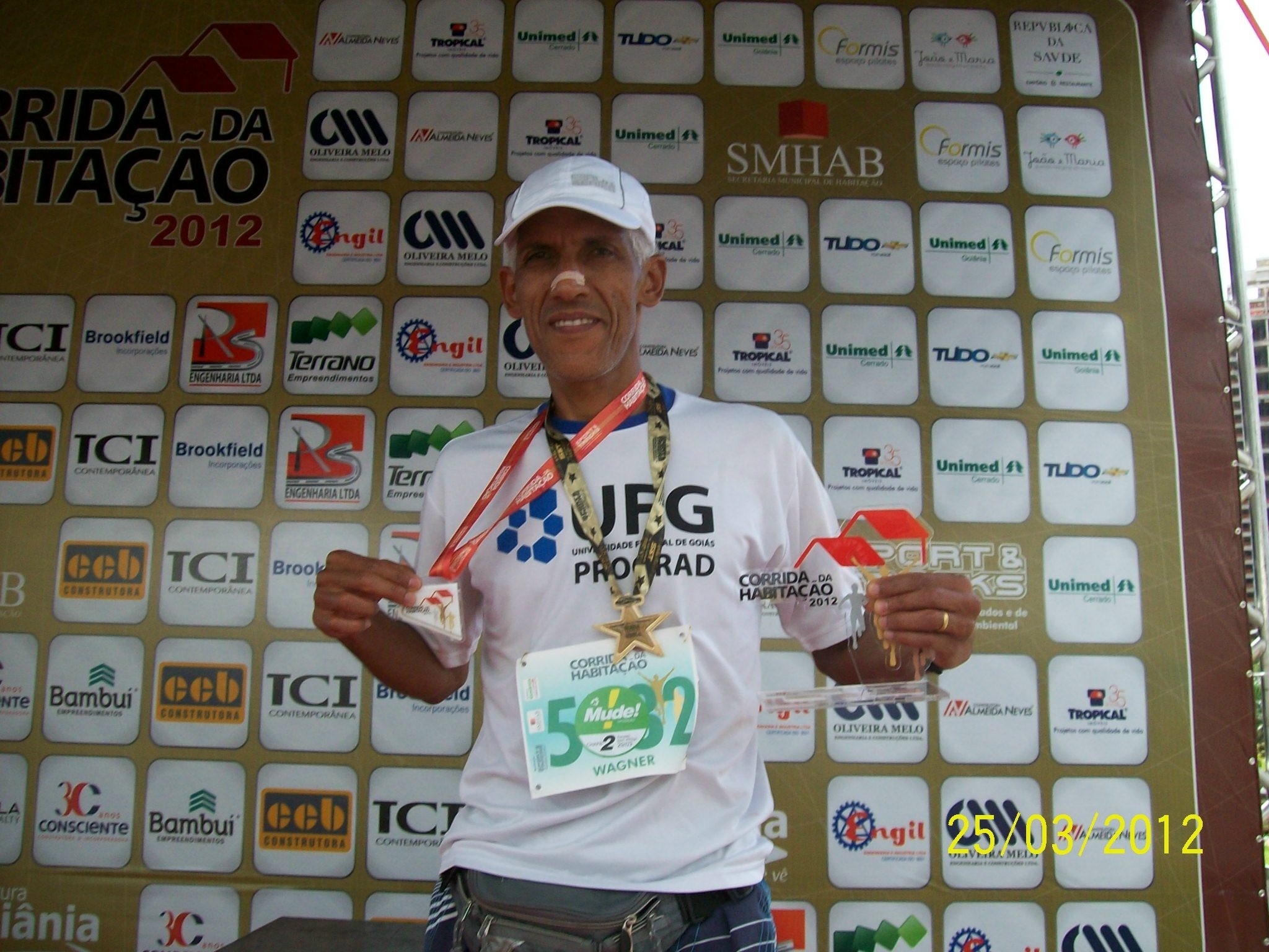 Outras provas - Wagner Ferreira Lemes alcançou o 4º lugar em sua faixa etária, 51/55 anos, nos 10km da 2ª Edição da "Aparecida correndo pela vida - Contra o Crack", realizada no último dia 18/03 na cidade de Aparecida de Goiânia.Também participaram do evento outros servidores da UFG: Wanderley Cidião - FO, José Maria - HC, Eudine B. Lima - HC, e Orlando de Souza - aposentado HC. Todos tiveram uma boa participação.