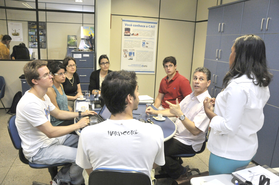 Ocorreu nesta terça-feira, 03/04, a reunião da Coordenadoria de Assuntos Internacionais (CAI) com os estudantes selecionados pelo Programa Brafitec, projeto de intercâmbio do Institut National des Sciences Appliquées (INSA), na França. O projeto funciona na UFG há quatro anos e, contando com os aprovados em 2012, já mandou 21 alunos da universidade para os cinco núcleos da instituição francesa. O intercâmbio, que tem a duração de um ano, conta com bolsa da CAPES, que cobre seguro de vida, passagens aéreas e ajuda de instalação. Os estudantes Felipe Cavalcanti e Guilherme Sebba irão para o núcleo de Lyon, Jade de Castro e Leonardo Fernandes para o núcleo de Strasbourg, e a estudante Lorena da Silva para o núcleo de Rennes.
