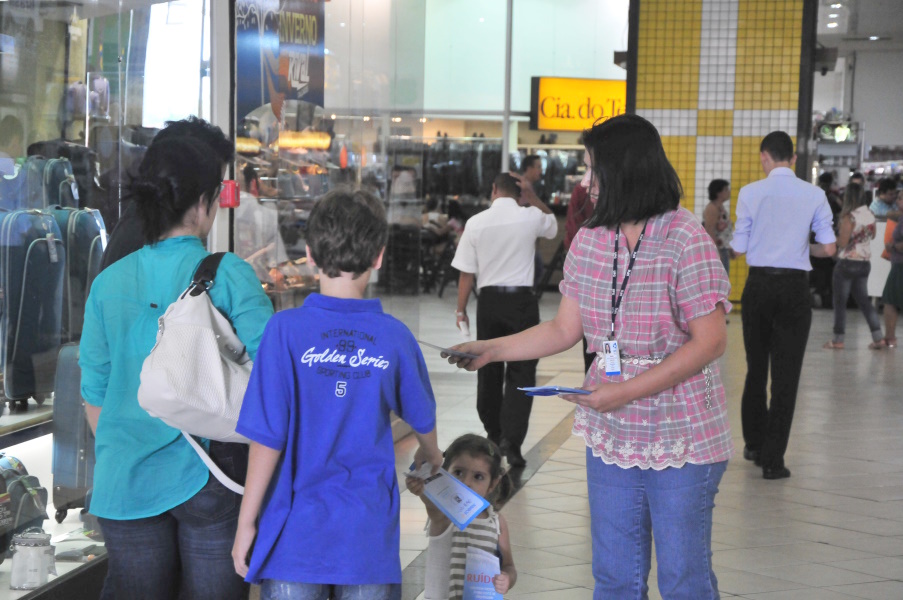 Panfletos informativos são entregues no Araguaia Shopping