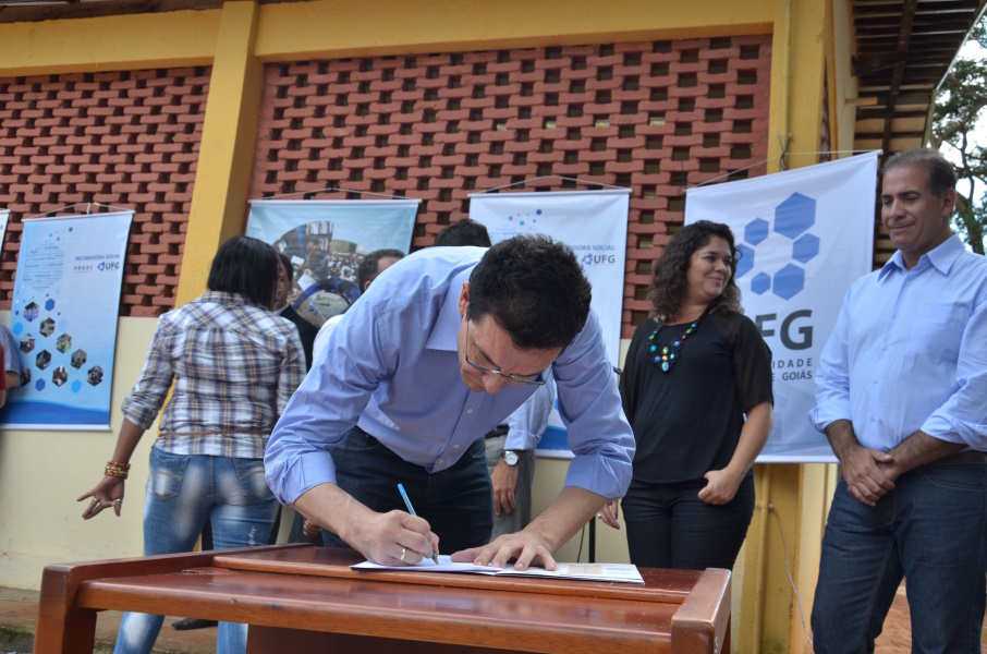 O reitor da UFG, Edward Madureira Brasil, assina a carta de intenções