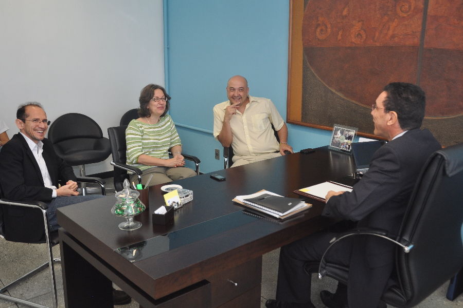Na manhã de quarta-feira, 16/05, o reitor da UFG, Edward Madureira, juntamente com a coordenadora de Assuntos Internacionais, Ofir Bergemann, e o pró-reitor de Extensão e Cultura, Anselmo Pessoa Neto, recepcionaram o monitor da Comissão Europeia, Maurício Benito. Ele veio à UFG com o objetivo de conhecer as atividades realizadas e as expectativas da UFG na parceria com o Instituto de Estudos Brasil Europa - IBE, além de verificar quais atividades estão programadas para este ano.