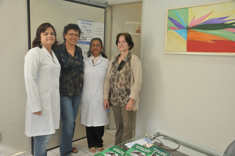 Vânia Cristina Marcelo e as integrantes da junta médica: Cláudia Araújo de Oliveira, presidente da junta médica, e as enfermeiras Maria Neves Pereira e Ivonete Mendonça