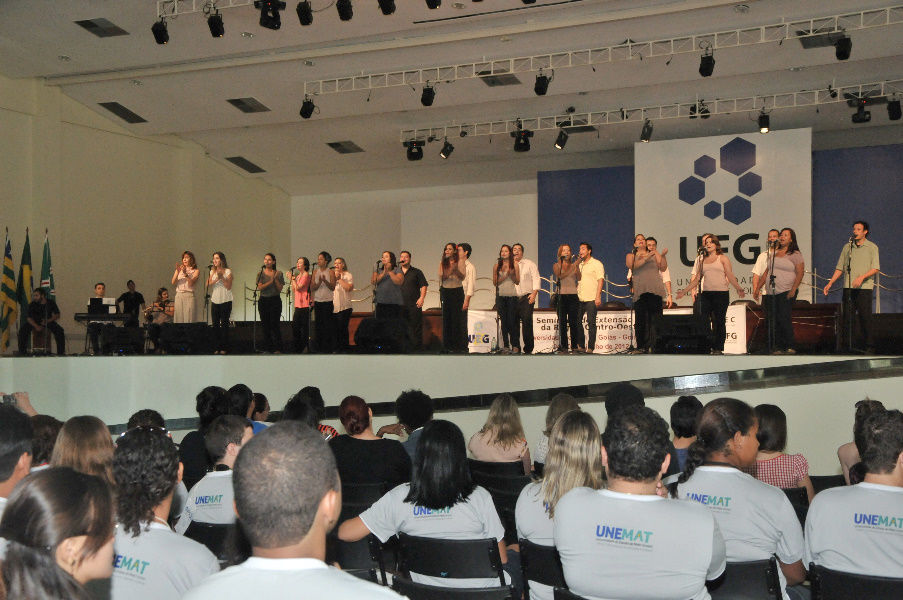 Teve início na tarde de segunda-feira, 04/06, o V Seminário de Extensão Universitária da Região Centro-Oeste (Serex 2012), realizado em parceria da UFG com a Universidade Estadual de Goiás (UEG). A cerimônia de abertura ocorreu no salão principal do Centro de Cultura e Eventos da UFG, localizado no Câmpus Samabaia. Estiveram presentes gestores, estudantes e professores que atuam na extensão de universidades da região Centro-Oeste, entre as quais, a Universidade de Brasília (UnB), Universidade Federal do Mato Grosso (UFMT), Universidade Estadual do Mato Grosso (Unemat), Universidade Federal do Mato Grosso do Sul (UFMS) e Universidade Estadual de Goiás (UEG).