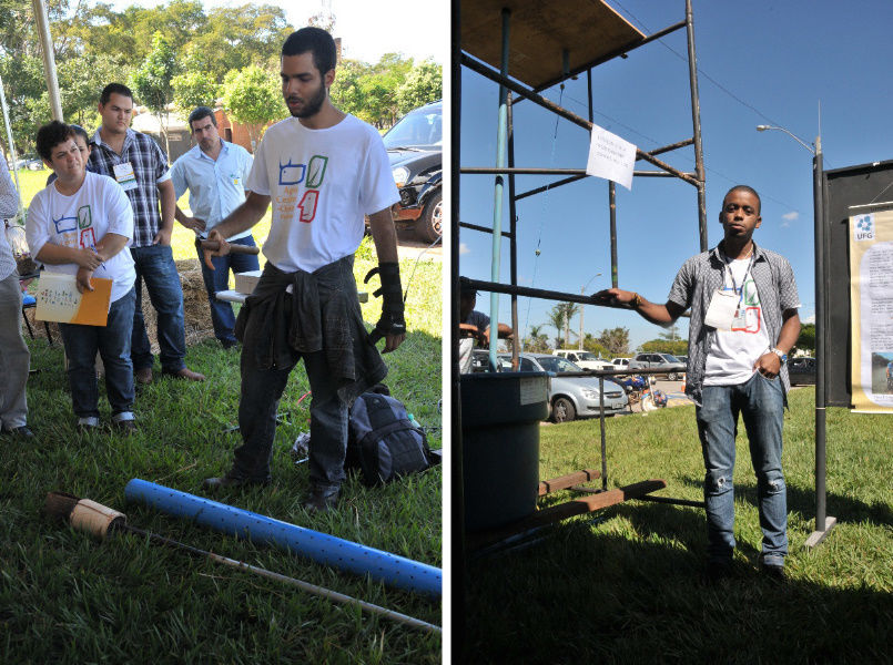 Os estudantes Ranieri Ramadham apresentou o "Mini-poço Artesanal" e Ricardo Ferreira apresentou o "Elevador de Água"