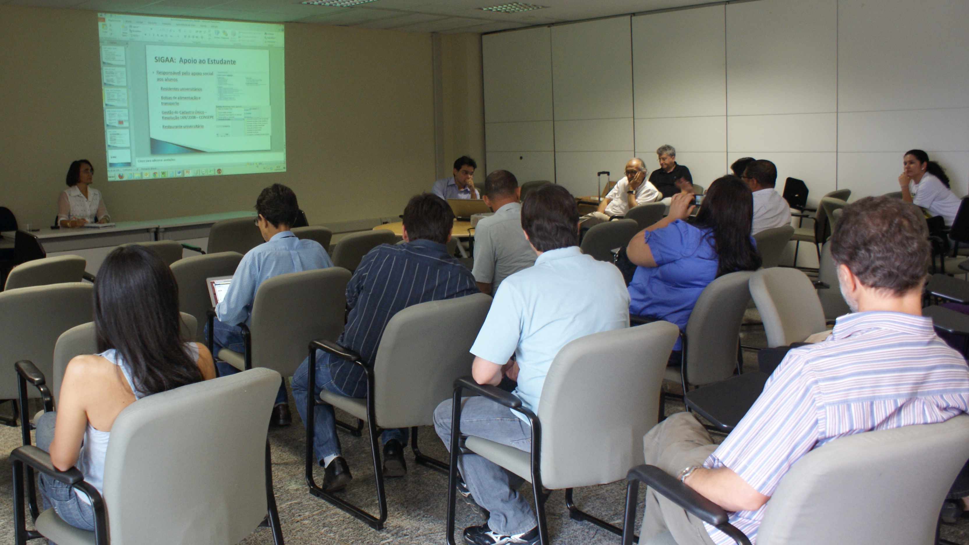 Estavam presentes no evento cerca de 50 pessoas, entre elas pró-reitores, assessores da Reitoria e Pró-reitorias, e os diretores dos órgãos envolvidos com o sistema de gestão administrativa da UFG. O encontro visa a apresentar e discutir uma possível implantação desse sistema consolidado, que já está sendo utilizado por 25 instituição federais, entre elas 18 universidades.
