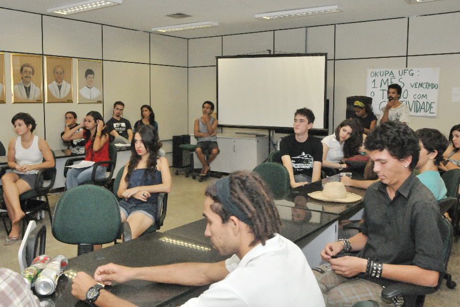 Na manhã de ontem (17/09), estudantes do movimento conhecido por Ocupa UFG foram recebidos pelo reitor da UFG, Edward Madureira Brasil. O grupo entregou um documento reivindicando a criação de um espaço aberto de convivência, produção cultural e científica permanente para a comunidade acadêmica, em especial, os estudantes. O principal argumento é o de que esses espaços permitiriam uma maior mobilização para a realização de atividades interdisciplinares e também para o exercício do pensamento crítico e criativo. O reitor afirmou que vai tratar a questão com a equipe gestora da universidade e entrará em contato com o grupo para marcar um novo encontro.