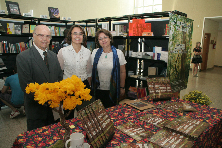No lançamento de "A escola vai ao bosque Auguste Saint-Hilaire", pró-reitora de Graduação, Sandramara Matias (meio), Marilda Shuvartz e José Ângelo Rizzo