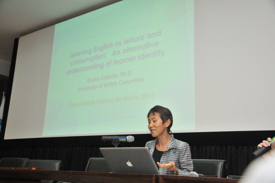 A Faculdade de Letras (FL) e o Núcleo de Estudos Canadenses (NEC) ofereceram na última segunda-feira (01), a palestra “Aprender inglês por prazer ou por consumo: uma compreensão alternativa da identidade do aprendiz” ministrada pela professora da University of Britsh Columbia, no Canadá, Ryuko Kubota. A palestra contou com tradução simultânea do inglês para o português, feita pela intérprete Karla Avanço, e teve como objetivo introduzir o I Seminário Internacional de Estudos Interculturais, a ser realizado na terça-feira (02/10).