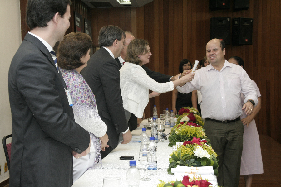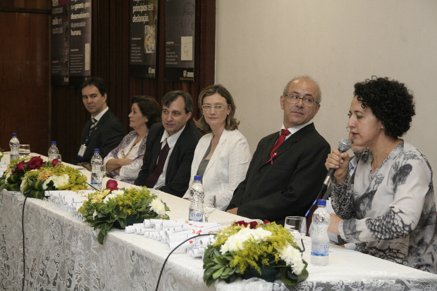 Após a Aula Magna, foi composta a mesa diretiva com a presença da ministra, do vice-reitor da UFG, Eriberto Bevilaqua, do deputado estadual e coordenador da Comissão de Direitos Humanos da Assembleia Legislativa, Mauro Rubem, do diretor da Faculdade de Direito, Nivaldo dos Santos, da coordenadora do NDH-UFG e do curos de especialização EaD em Educação para Diversidade e Cidadania, Vilma de Fátima Machado, do diretor do Centro Integrado de Aprendizagem em Rede (CIAR/UFG), Leonardo Barra, e da pró-reitora de Pós-Graduação, Divina das Dores de Paula Cardoso.