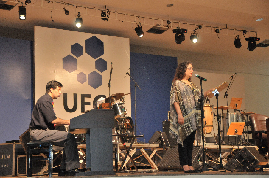 A cerimônia foi aberta com a apresentação de Ângela Barra (canto) e Carlos Costa (piano), da Escola de Música e Artes Cênicas da UFG.