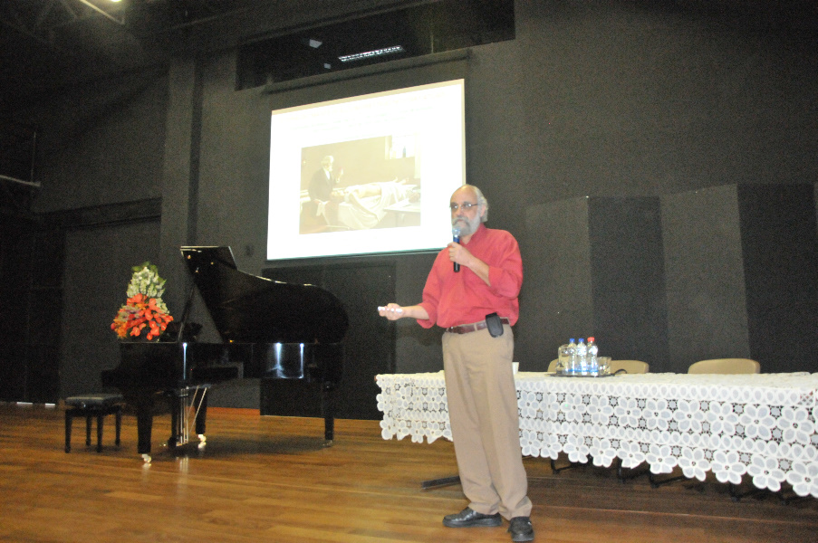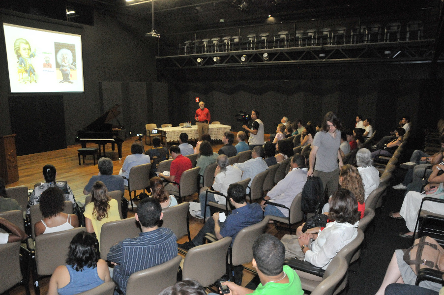 O professor também mostrou quais partes do cérebro estão relacionadas à audição e as variadas formas de inteligência. Em sua apresentação, exibiu gráficos e imagens dos resultados de pesquisas feitas com diferentes públicos sob estímulo musical. “Se eu não uso uma parte para uma função, vou usar para outras”, afirmou o professor, ressaltando as diversas possibilidades de ativação cerebral.