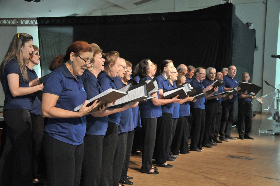 A abertura contou com a apresentação do Coral Vozes da Adufg, que arrancou aplausos da plateia com o repertório em homenagem ao centenário de Luiz Gonzaga. Em seguida, a Turma de Libras II – CT&D/UFG, coordenada pela professora Neuma Chaveiro interpretou a música Tempos Modernos.