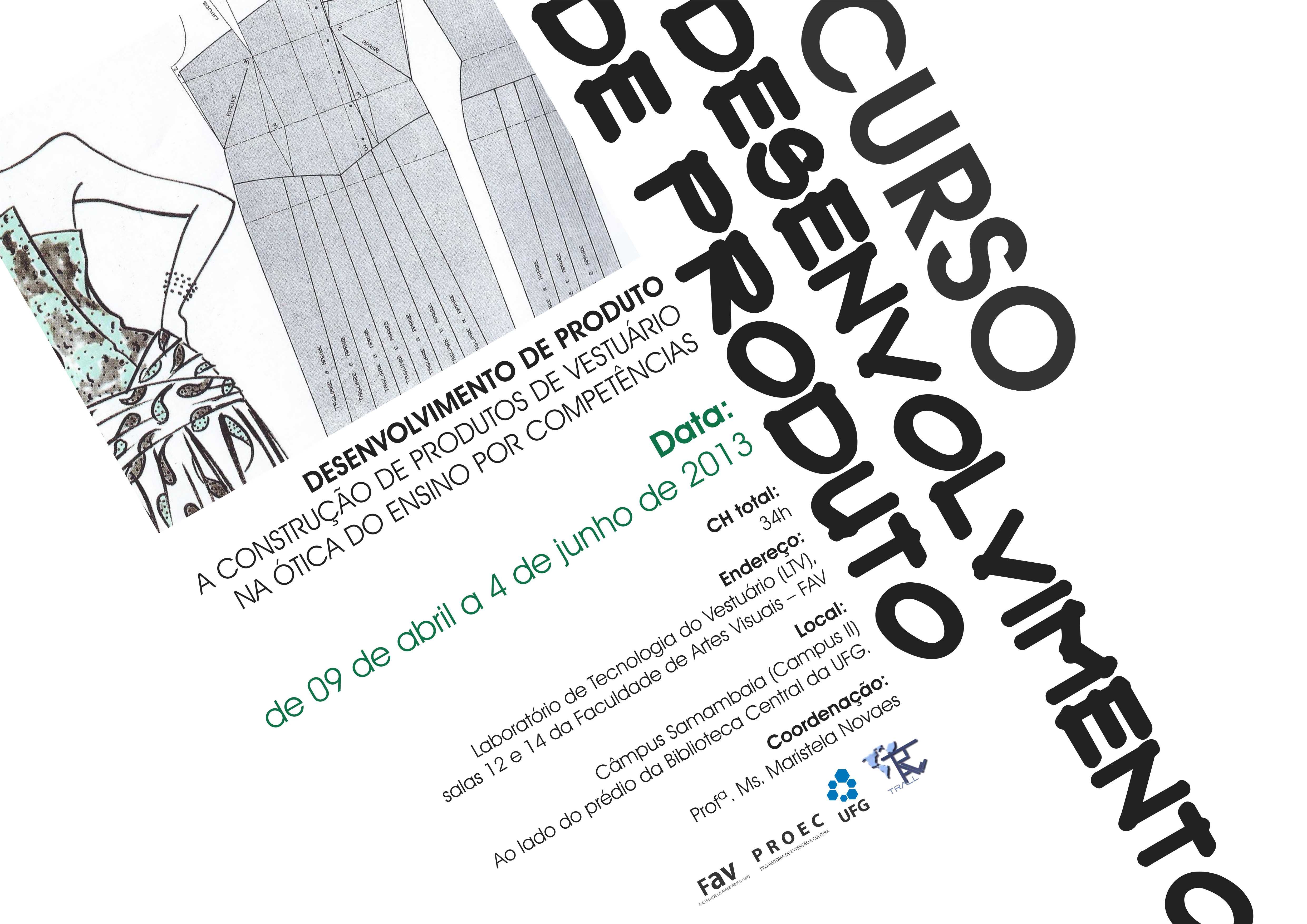 O curso vai até 4 de junho de 2013, às terças-feiras, de 18h00 às 22h00, no Laboratório de Tecnologia do Vestuário (LTV), salas 12 e 14, da Faculdade de Artes Visuais (FAV/UFG), sob a responsabilidade da Profa. Maristela Abadia Fernandes Novaes.Tem como foco os conteúdos de modelagem e a gestão de processos produtivos em produtos de vestuário e conta com a parceria do Serviço Nacional de Aprendizagem Industrial (SENAI-GO), que forneceu o material para o embasamento teórico-metodológico relacionado ao ensino por competências e disponibilizará professores para os conteúdos de mecânica de máquina e para parte do conteúdo de costura.