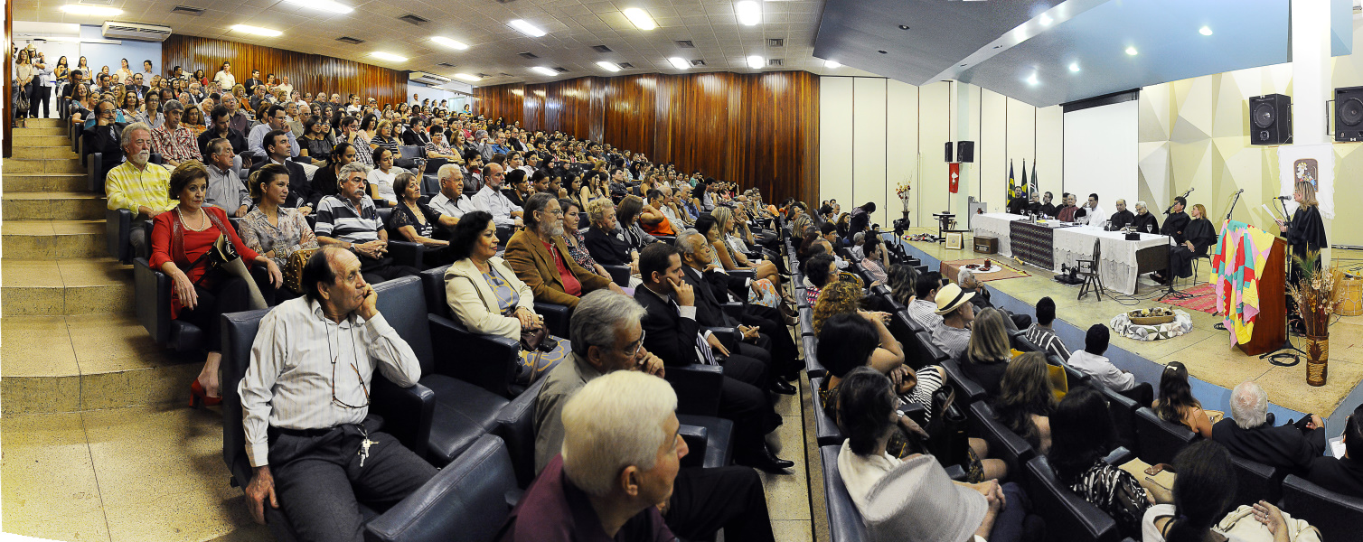 Auditório da Faculdade de Educação da UFG lotado durante a cerimônia