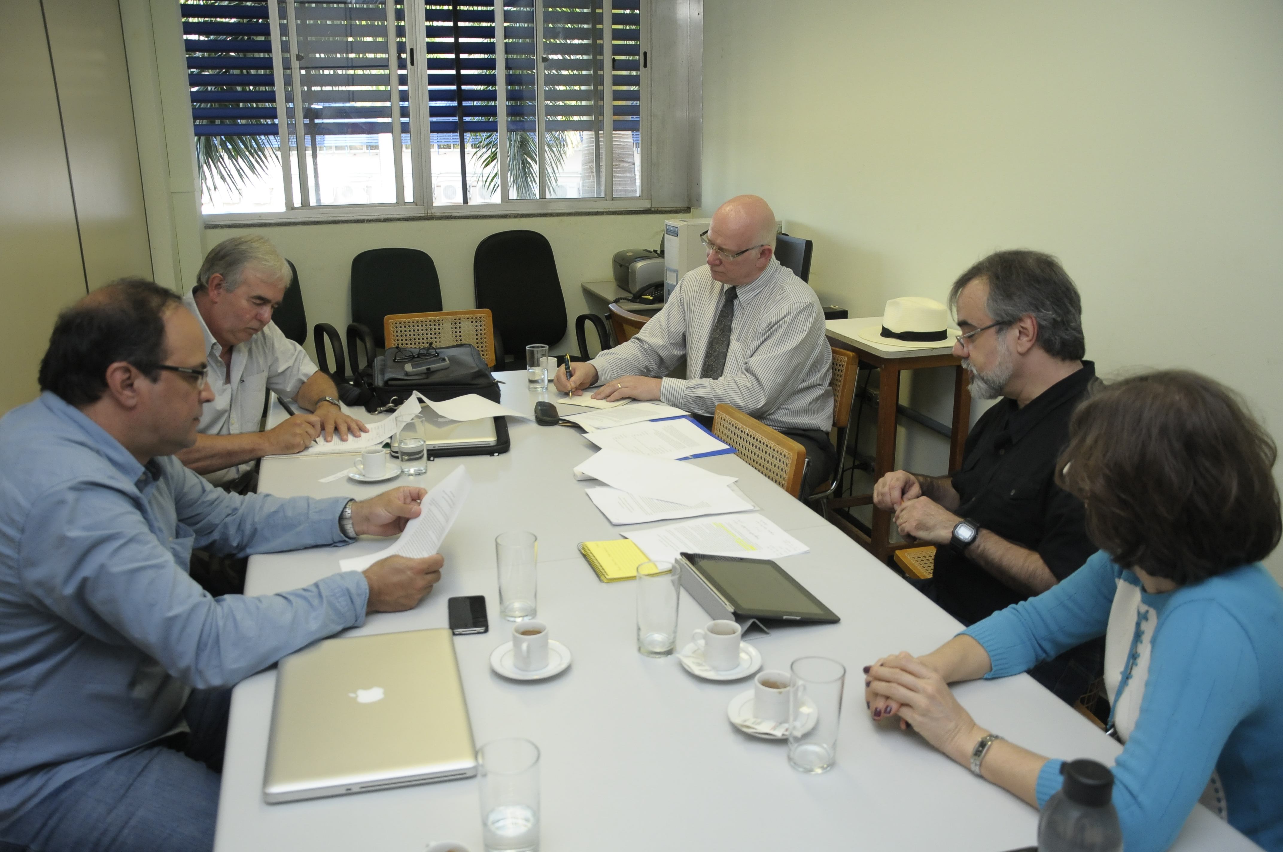 A Coordenadoria de Assuntos Internacionais (CAI) e o professor Eduardo Meirinhos da Escola de Música e Artes Cênicas estiveram no dia 5 de junho em reunião com os doutores Phillip Krummrich e Frank Oddis, ambos professores da Morehead State Unviersity. Os professores visitam a UFG em missão de trabalho pelo convênio CAPES-FIPSE. Este convênio trata de um consórcio entre quatro universidades, duas brasileiras - Universidade Federal de Goiás -UFG e Universidade do Estado de Santa Catarina UDESC - e duas americanas Morehead State University - MSU e Marshall Univesity - MU. Eduardo Meirinhos é o coordenador brasileiro deste consórcio.