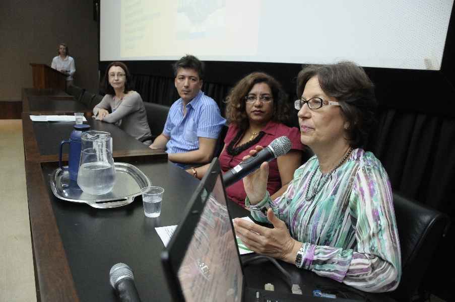 Na mesa redonda de abertura do Seminário, a professora Carla Janaína Figueredo, da Faculdade de Letras, da UFG, falou sobre as Bases históricas e diferentes concepções da interculturalidade. "A abordagem intercultural de ensino ganhou muita força na década de 1990, com forte influência da globalização e da internacionalização, que trouxeram mudanças significativas no ensino", relatou a professora Carla.