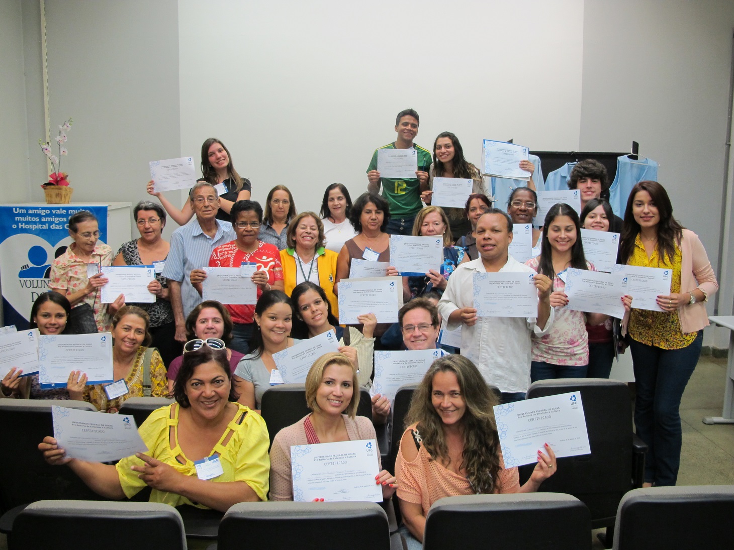 O Voluntariado do Hospital das Clínicas da UFG recebeu no dia nacional do voluntário, dia 28 de agosto, no auditório da Faculdade de Nutrição da UFG, 43 novos voluntários que trabalharão no HC. Os interessados em desenvolver atividades voluntárias no Hospital participaram de um curso no qual receberam informações sobre o que é um trabalho voluntário e quem pode desenvolvê-lo, além de orientações sobre como ele pode ser desempenhado. Todos os candidatos a voluntários do HC precisam passar por esse momento de preparação, que ocorre anualmente há 15 anos.
