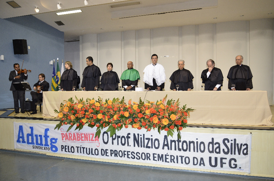 Uma noite de homenagens ao professor da UFG e médico Nilzio Antônio da Silva foi realizada dia 29 de agosto (quinta-feira). Em cerimônia solene, presidida pelo magnífico reitor Edward Madureira Brasil, Nilzio Antônio da Silva recebeu o título de Professor Emérito da Universidade Federal de Goiás, outorgado pelo Conselho Universitário da UFG, de acordo com a Resolução CONSUNI n.º17/2013. O título é considerado a maior honraria que pode ser dada pela universidade a um professor por sua trajetória acadêmica e de serviços prestados à instituição.