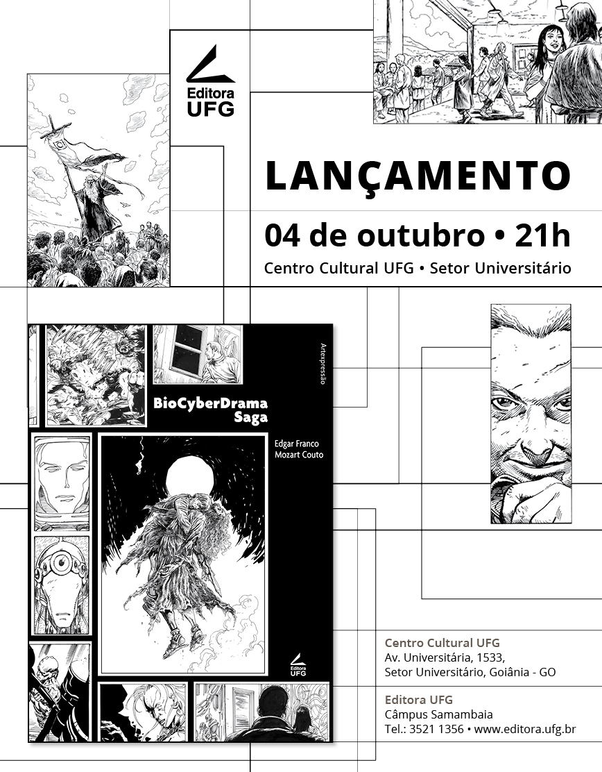 O professor da Faculdade de Artes Visuais da UFG (FAV/UFG), Edgar Franco, lança, no dia 4 de outubro, o livro BioCyberDrama Saga, da Editora UFG. O lançamento do livro será realizado às 21h no Centro Cultural UFG, na Praça Universitária.