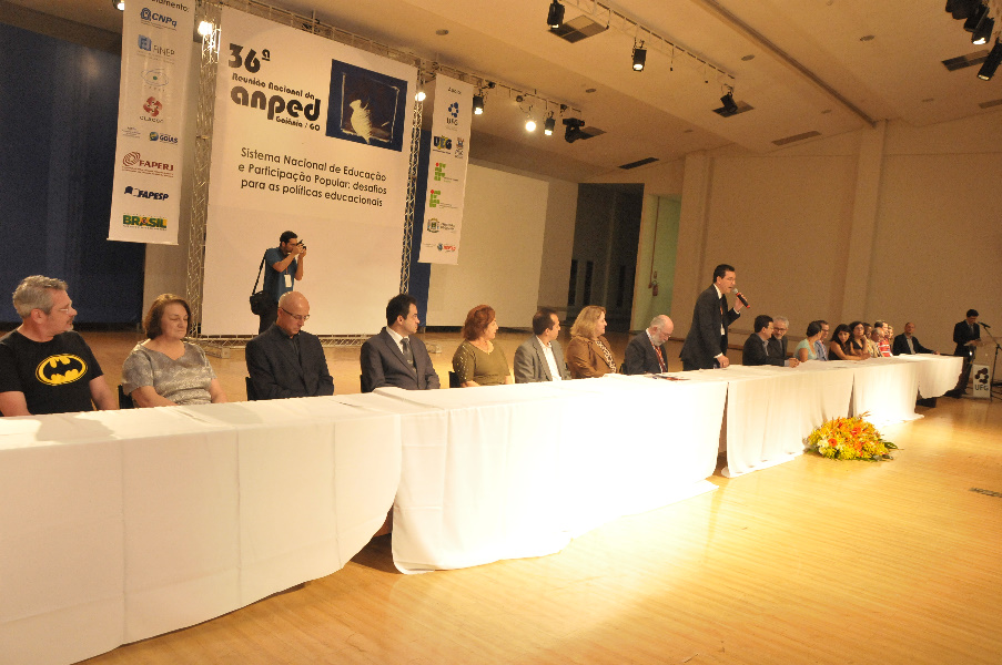 A abertura da 36ª reunião da Associação Nacional de Pós-Graduação e Pesquisa em Educação (ANPEd) movimentou o Centro de Cultura e Eventos Professor Ricardo Freua Bufáiçal, no Câmpus Samambaia, na noite de domingo, dia 29/09. O tema desta edição é "Sistema Nacional de Educação e Participação Popular: desafios para as Políticas Educacionais".