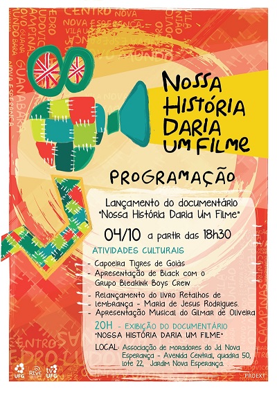 No dia 4 de outubro, o Telelab/FIC/UFG, a Fundação RTVE e TV UFG lançam o primeiro documentário de “Nossa História daria um filme” no Jardim Nova Esperança, bairro que na série representa a Região Noroeste de Goiânia.