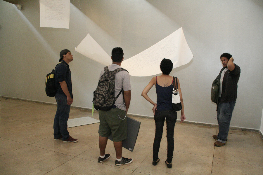 As “cartas de vento e do mundo virtual”, como descreve Lucimar Bello, foram feitas em papel de arroz japonês com grafite 4B. “As cartas deveriam ser colocadas para exposição com grande delicadeza. A Galeria da UFG permite isso, pois ela cria condições para essa leveza proposta pela Carta Cura Corte, tanto na escrita quanto nas respostas das cartas.”