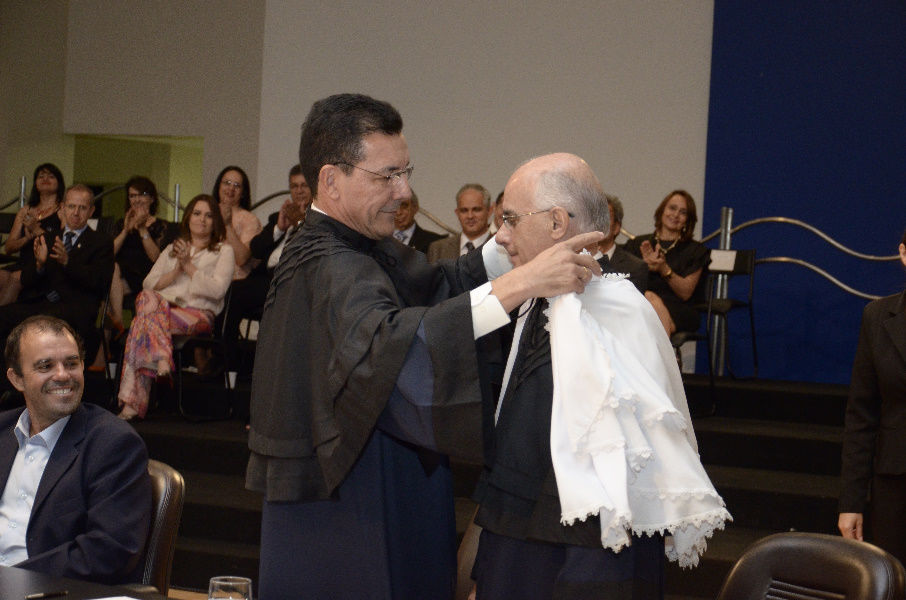 A comunidade acadêmica da UFG prestigiou em grande número a sessão solene de transmissão de cargo de reitor à Orlando Afonso Valle do Amaral realizada ontem (06/01). Depois de dois mandatos à frente da UFG, Edward Madureira Brasil deixou a Reitoria para que o pró-reitor de Administração e Finanças de seu reitorado assumisse o cargo. Orlando Amaral foi eleito em 2013, após eleição em que concorreu em chapa única. Assume como vice-reitor Manuel Rodrigues Chaves, ex-diretor do Câmpus Catalão.