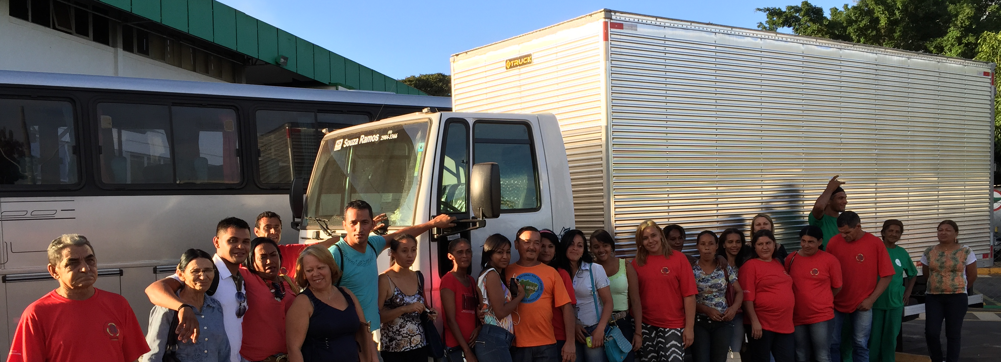 Catadores da Rede Uniforte ao lado de um dos caminhões doados por empresa de alimentos