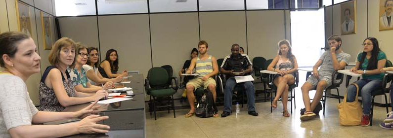 A Coordenadoria de Assuntos Internacionais (CAI) da UFG promoveu na tarde desta quarta-feira, (16/9), uma reunião para receber os estudantes intercambistas que vieram cursar o segundo semestre de 2015 na UFG. A equipe da coordenadoria recepcionou os 16 alunos estrangeiros e tirou as dúvidas dos visitantes a respeito da estadia na universidade. Foi sugerido, aos estudantes que não se integraram ainda em projetos ou estágios, que procurem a coordenação de seus cursos para verificar a possibilidade de envolvimento em algum tipo de atividade acadêmica.