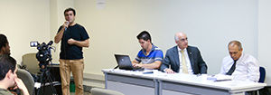 Leandro Pinho, da Asssessoria de Comunicação da UFG, apresentou o material da campanha que será distribuído em todos os prédios da Universidade