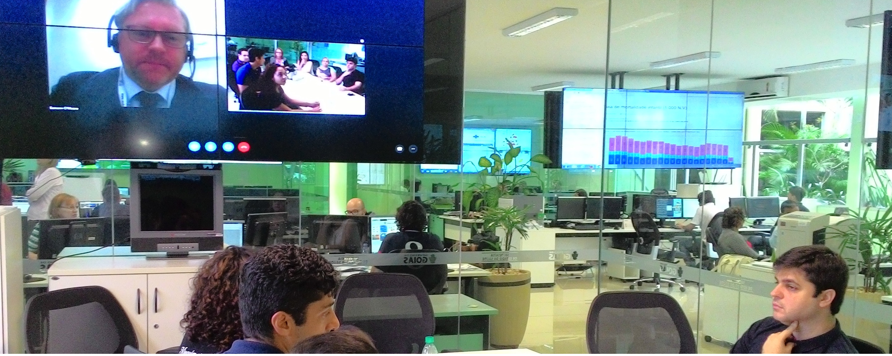 Representantes da Secretaria Municipal de Saúde de Aparecida de Goiânia, da Secretaria Estadual de Saúde de Goiás, da Universidade Federal de Goiás, do Ministério da Saúde e representantes da gestão estadual do sistema prisional de Aparecida de Goiânia participaram, na última quarta-feira (22/6), de teleconferência com Eamonn O'Moore representante da União Europeia na Organização Mundial de Saúde (OMS) para assuntos referentes a população privada de liberdade e minorias. No mês de março, o professor do Instituto de Patologia Tropical e Saúde Pública da UFG (IPTSP) e coordenador da Rede Ambulatorial da Secretaria Municipal de Saúde (SMS) de Aparecida, Carlos Magno Neves, esteve em Londres, para conhecer de perto o funcionamento do sistema de saúde britânico, o National Health System (NHS), que pretender utilizar como modelo para a população carcerária de Aparecida de Goiânia.