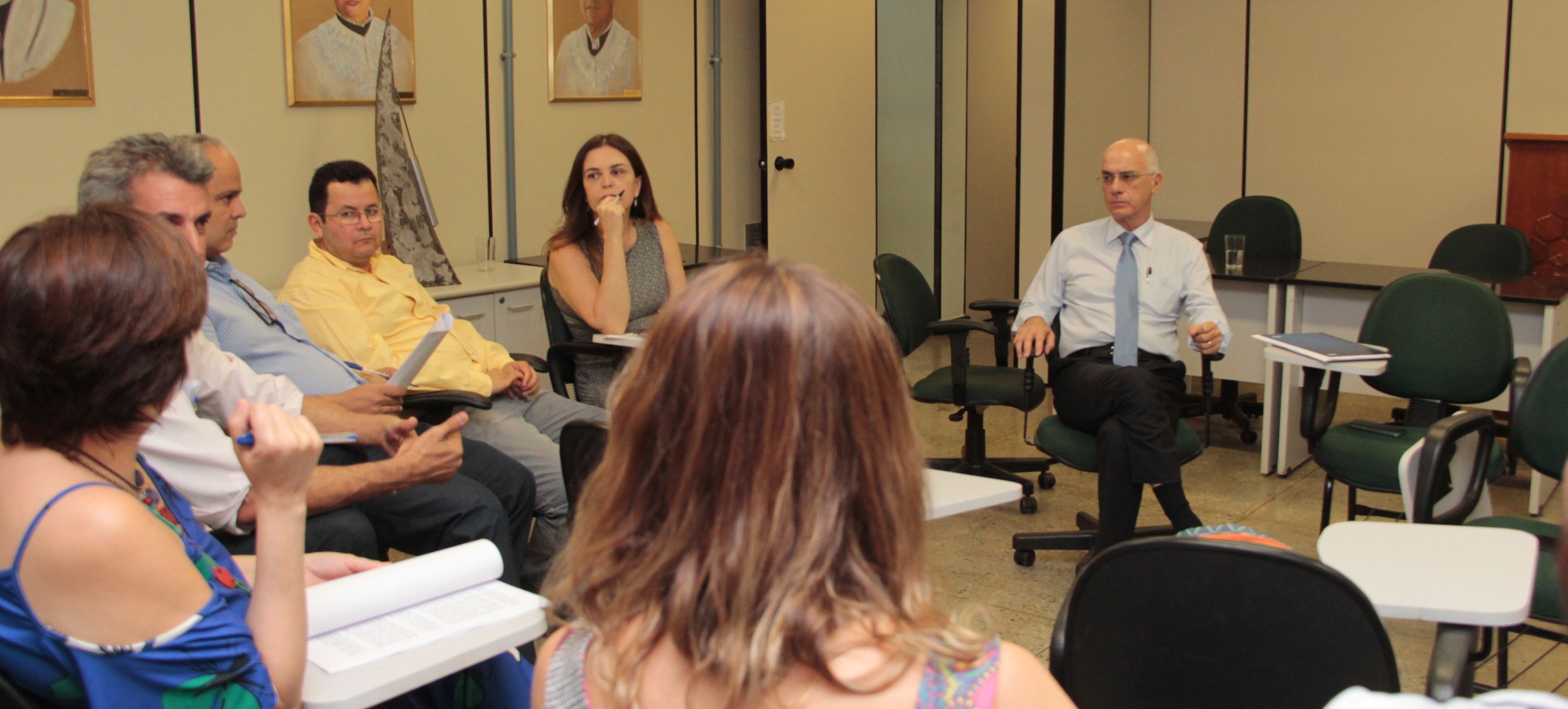 O reitor da UFG, Orlando Amaral, se reuniu nesta sexta-feira (9/9) com pró-reitores, diretores de regionais e coordenadores ligados à Graduação, Pós-Graduação e Extensão. Entre as pautas da reunião, foi discutida a minuta de resolução que dispõe sobre a integração entre os diferentes níveis de formação, no âmbito das atividades de ensino, pesquisa e extensão desenvolvidas na UFG.