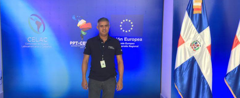 O professor da Faculdade de Artes Visuais (FAV) da UFG e coordenador do Laboratório de Pesquisa, Desenvolvimento e Inovação em Mídias Interativas (Media Lab), Cleomar Rocha apresenta trabalho interativo durante durante a reunião dos Ministros das Relações Exteriores e Altos Funcionários da Comunidad de Estados Latinoamericanos y Caribeños (Celac) e União Europeia, realizada esta semana em Santo Domingo, República Dominicana.